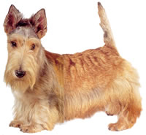 General Appearance The Scottish Terrier is a small, compact, short-legged, sturdily built dog of good bone and substance. His head is long in proportion to his size. He has a hard, wiry, weather-resistant coat and a thick-set, cobby body which is hung between short, heavy legs. These characteristics, joined with his very special keen, piercing, "varminty" expression, and his erect ears and tail are salient features of the breed. The Scottish Terrier's bold, confident, dignified aspect exemplifies power in a small package.