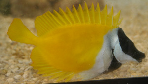 The foxface rabbitfish, also called the badgerfish, comes from the western pacific. They are a fairly hardy fish but their spines are poisonous and should be avoided. These fish are pretty disease resistant.